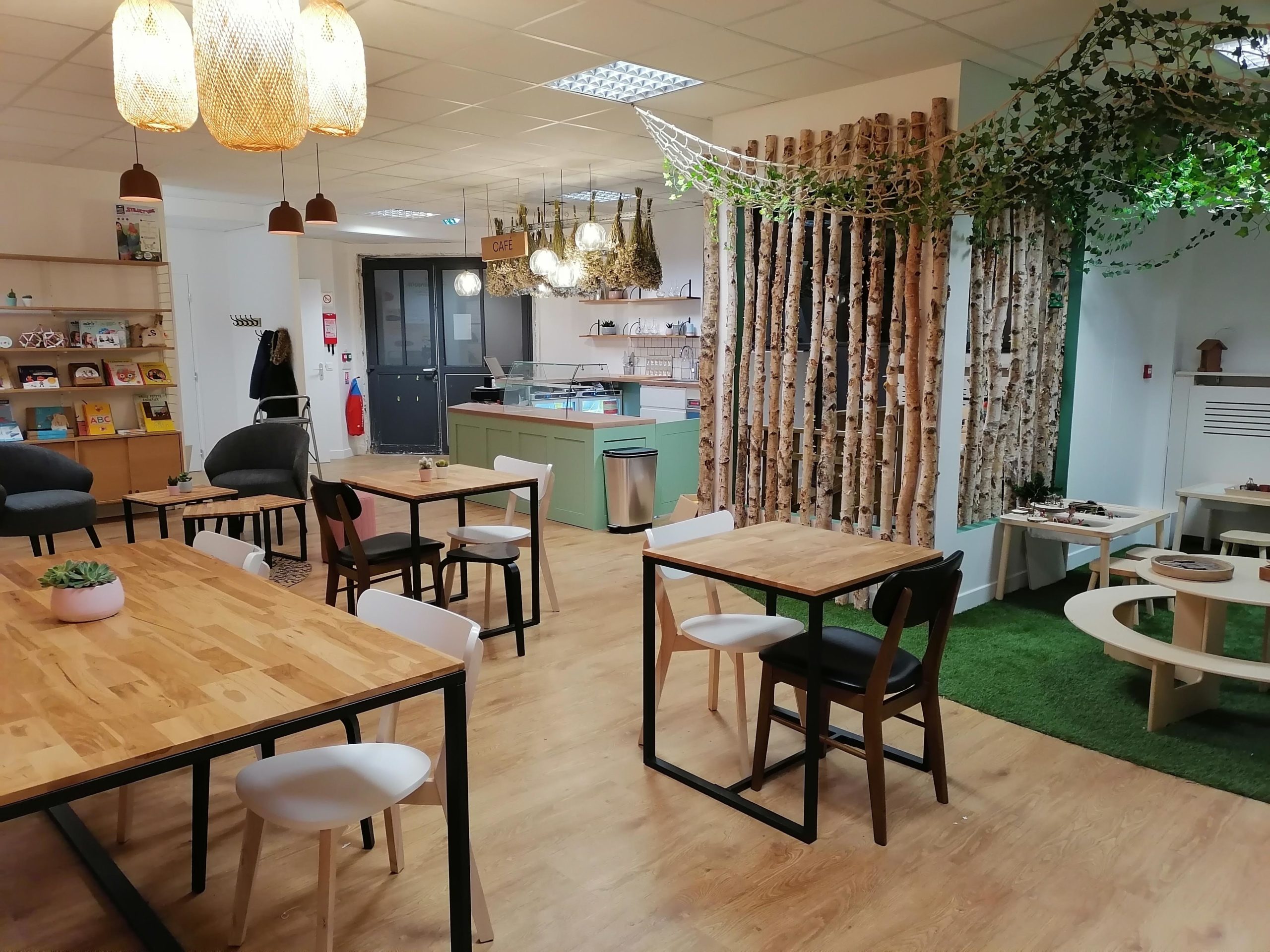 Les Polinsons pensent aussi aux adultes qui accompagnent les enfants à notre aire de jeux ou à nos activités. Sur place, un espace confortable pour prendre un café pendant que les enfants jouent, petit-déjeuner le week-end en famille ou avec des amis, travailler (fibre internet)…