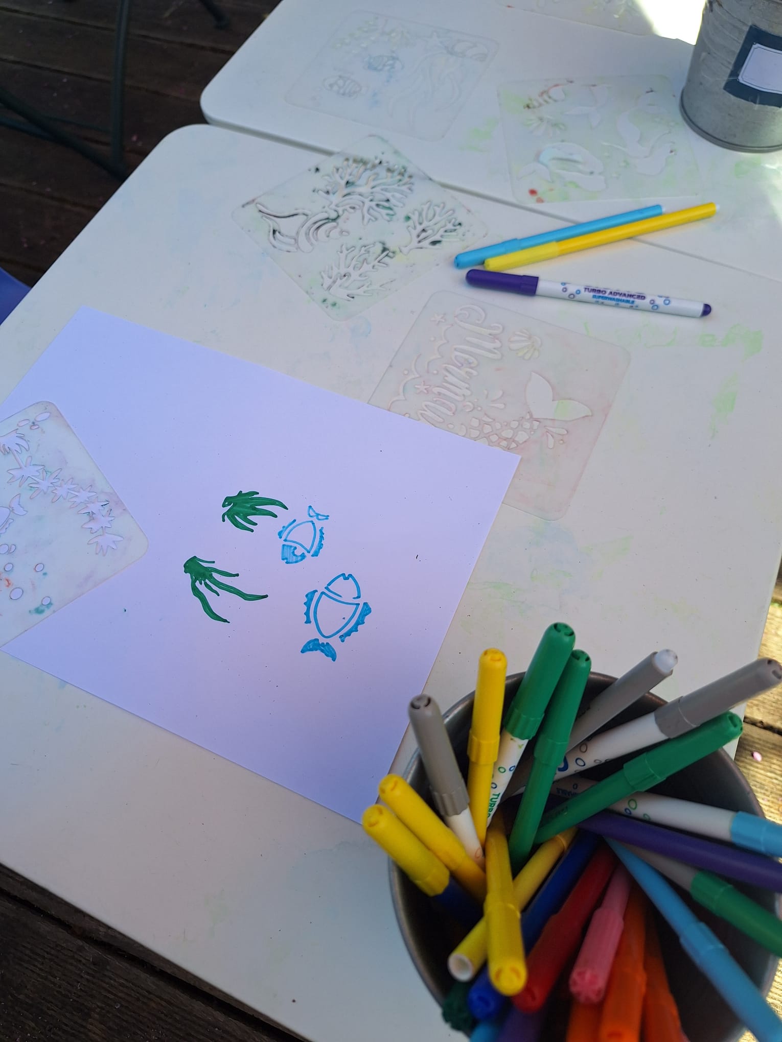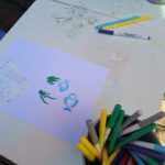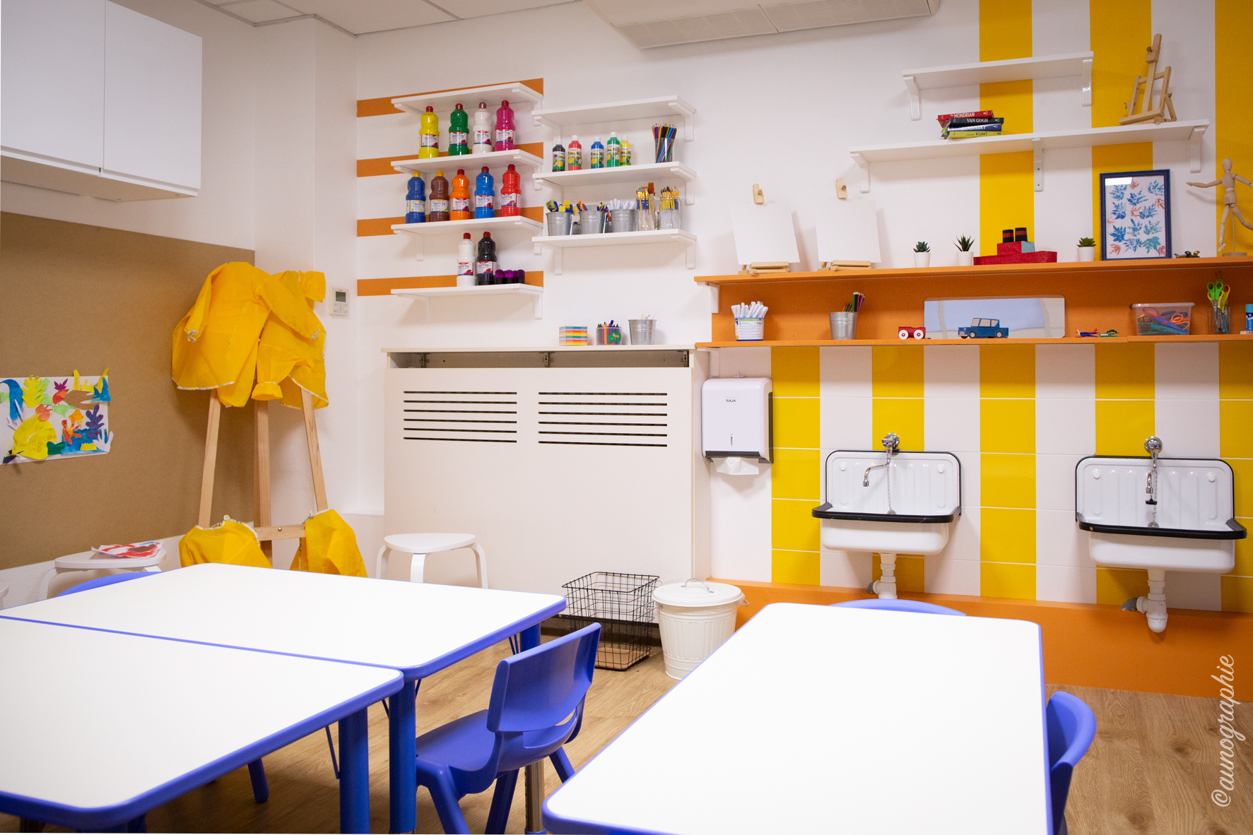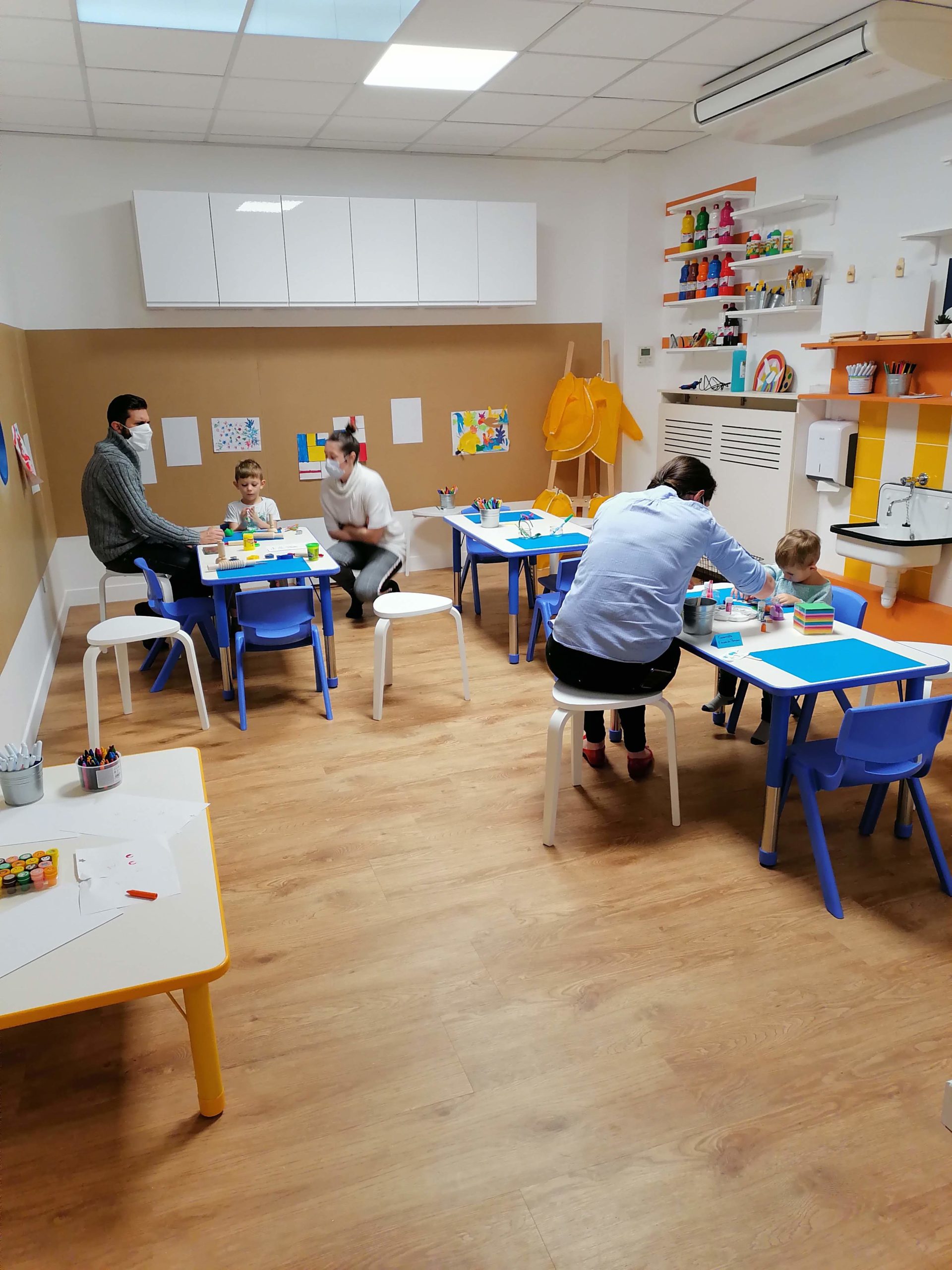 En fonction des moments de la semaine l’atelier des artistes est ouvert en libre service avec pate à modeler, coloriage, peinture à l’eau. Nous proposons également des kits créatifs clé en main à l’accueil (3€). Nous proposons également des activités artistiques encadrées par des professionnels pour les enfants dès 6 mois. Liberté pédagogique et d’expression sont les valeurs de ce lieu.