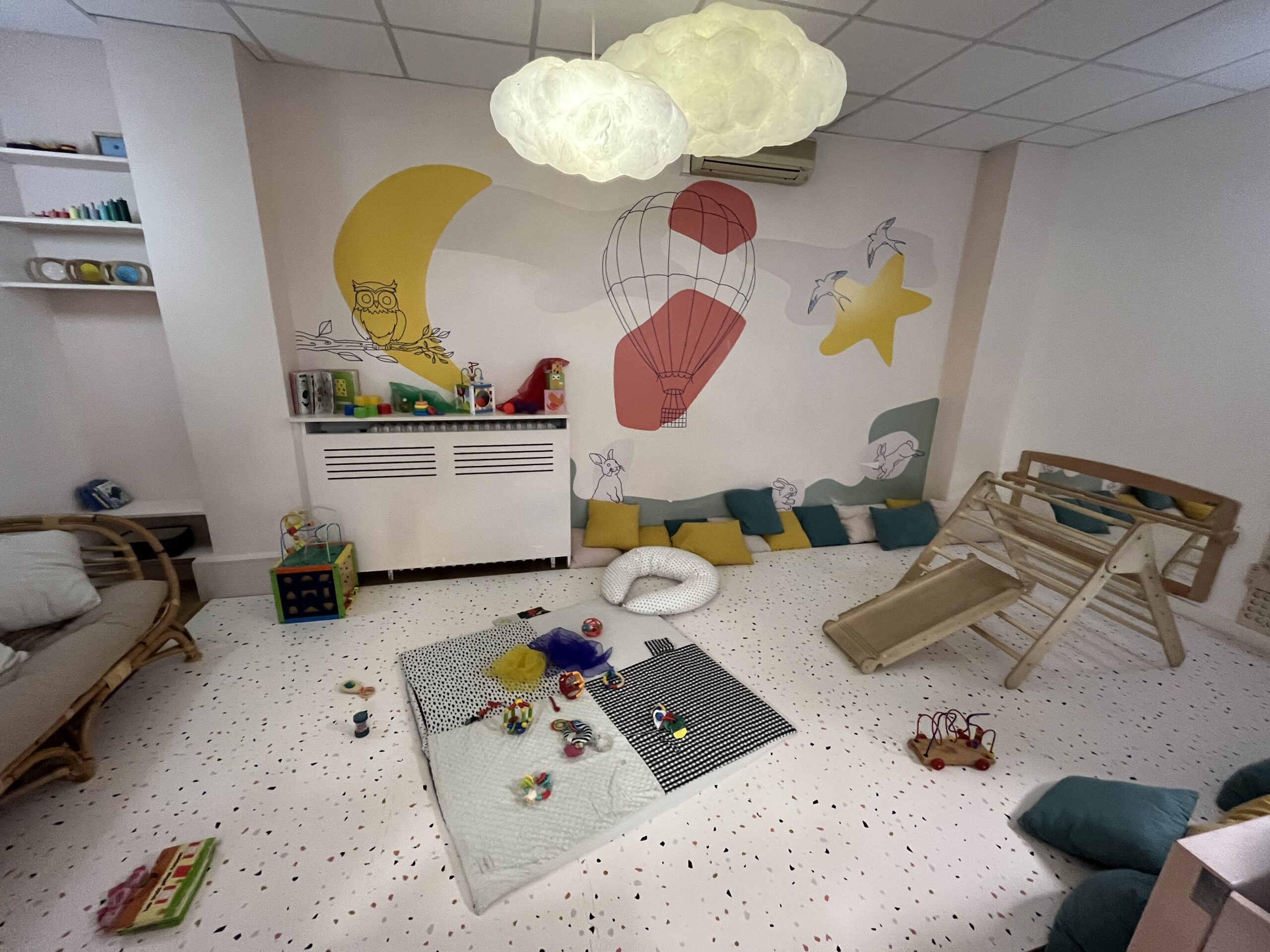 L’Abri des Petits offre un espace dédié aux activités d’éveil et à la motricité libre des touts petits. Tapis, sensorialité, livres, jeux, structure Pickler, busyboards… pour les enfants dès la naissance.