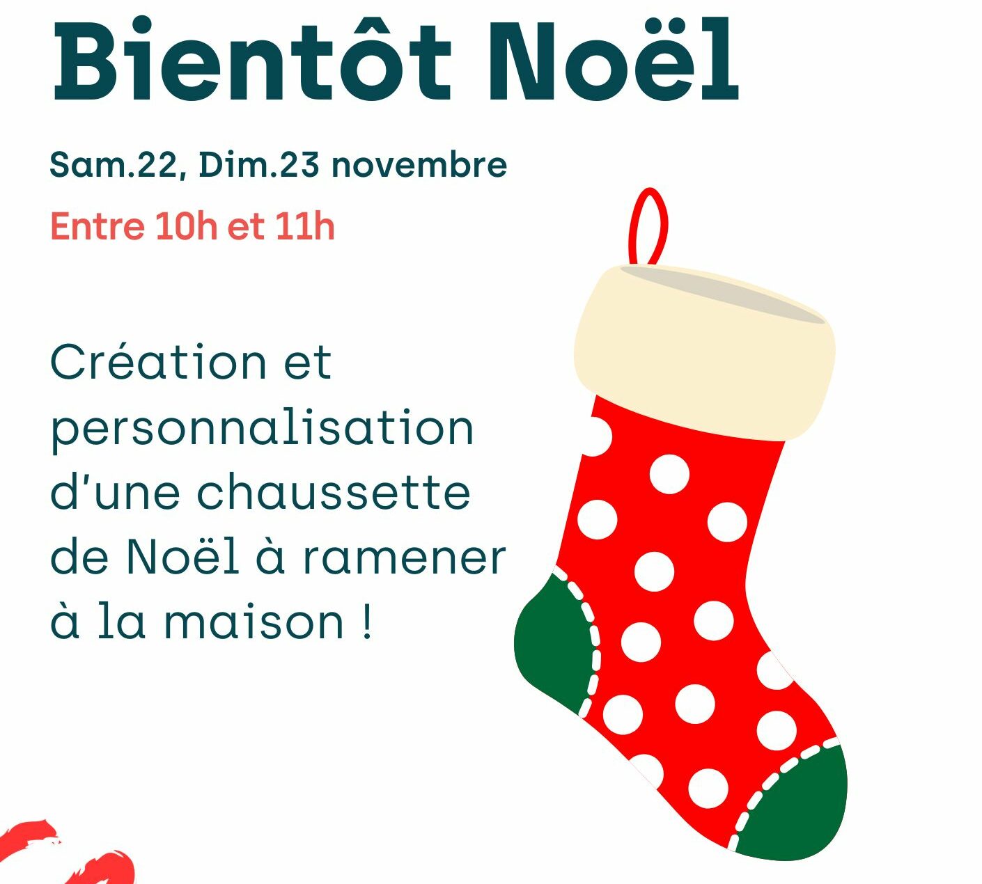 Venez profiter de l’aire de jeux et réaliser une chaussette de Noël en feutrine à ramener à la maison !